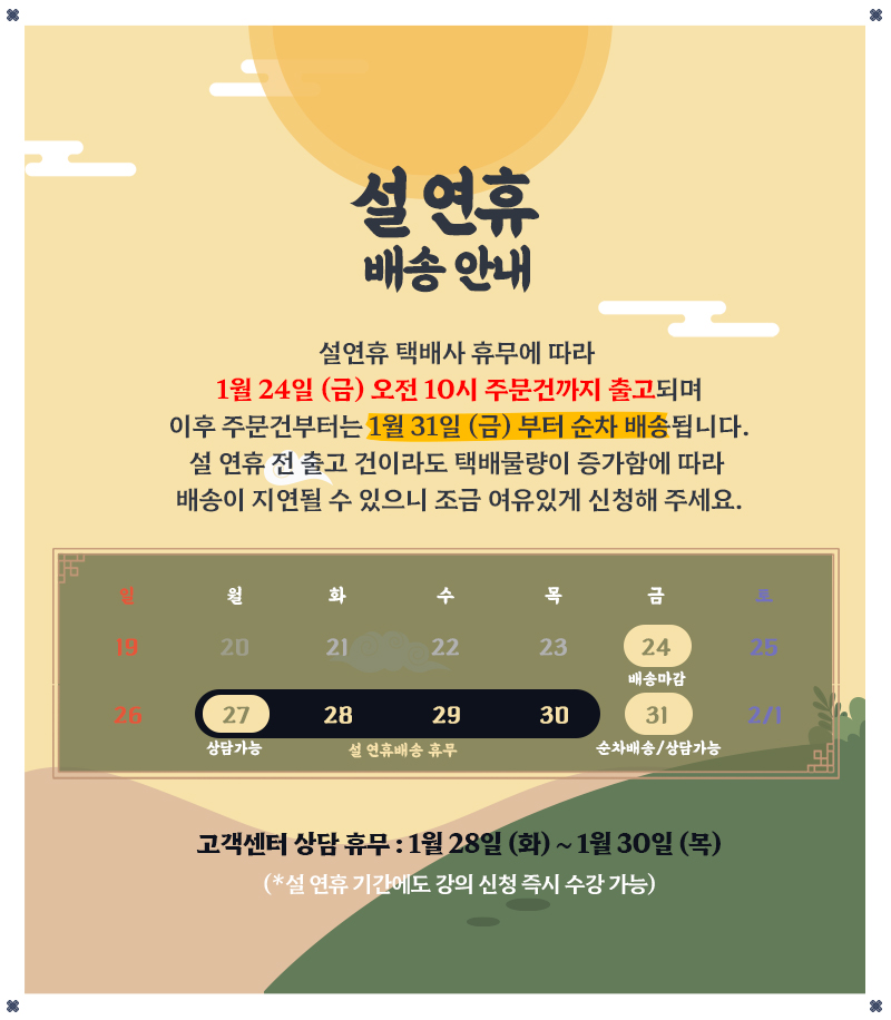 [공지] 12월 27일(금) 오후 시간대 유선상담 휴무 안내