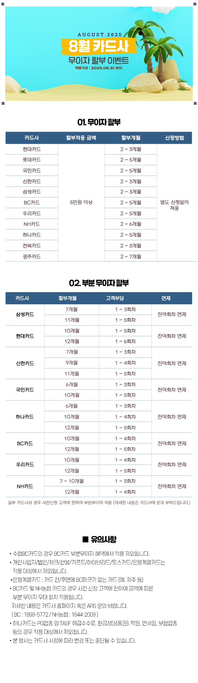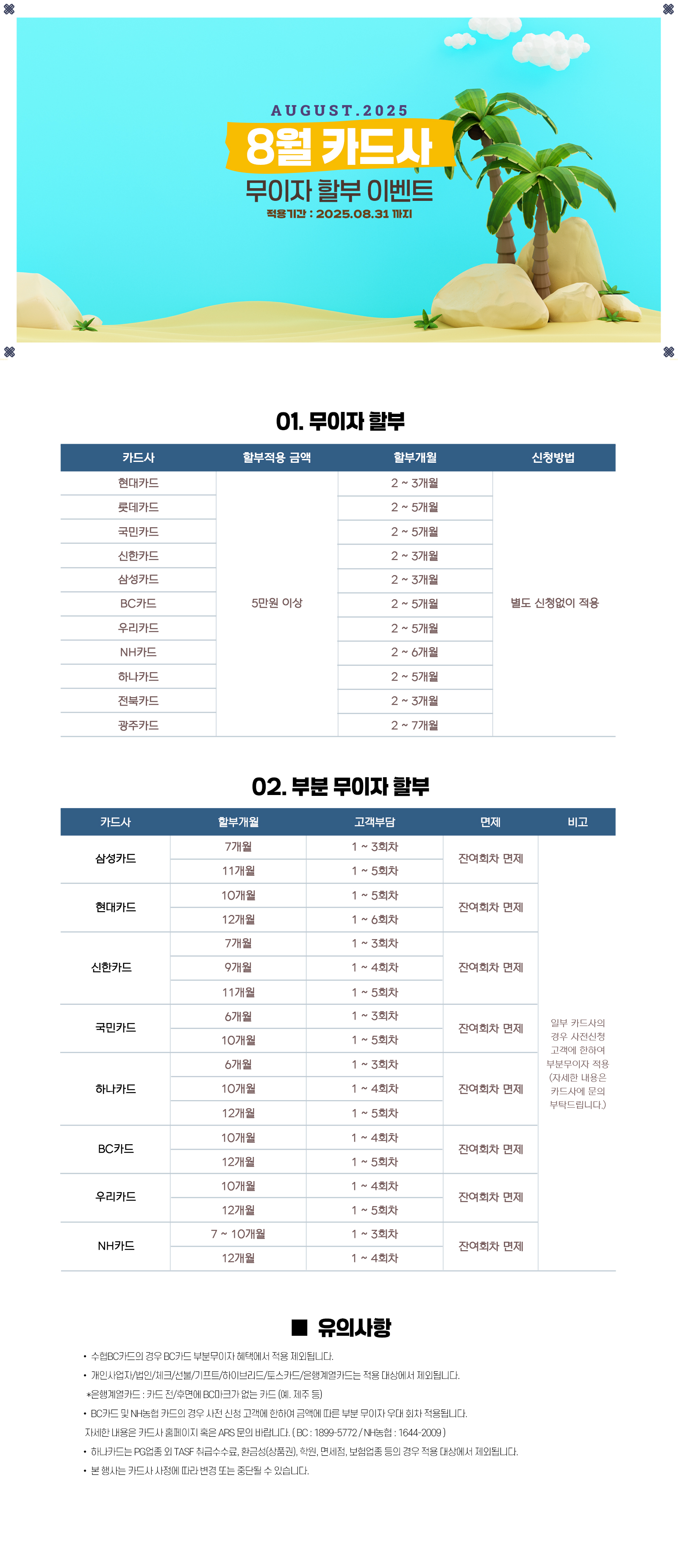 무이자할부 2025년 8월 이벤트 안내