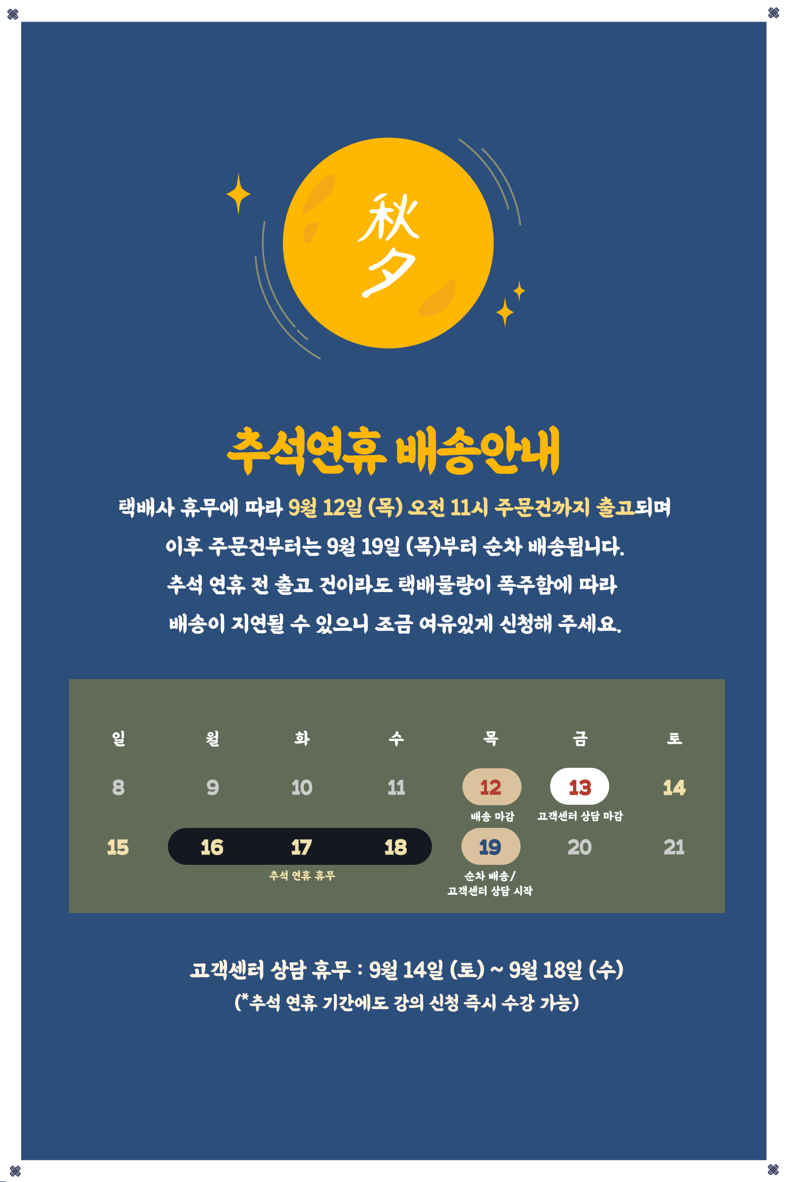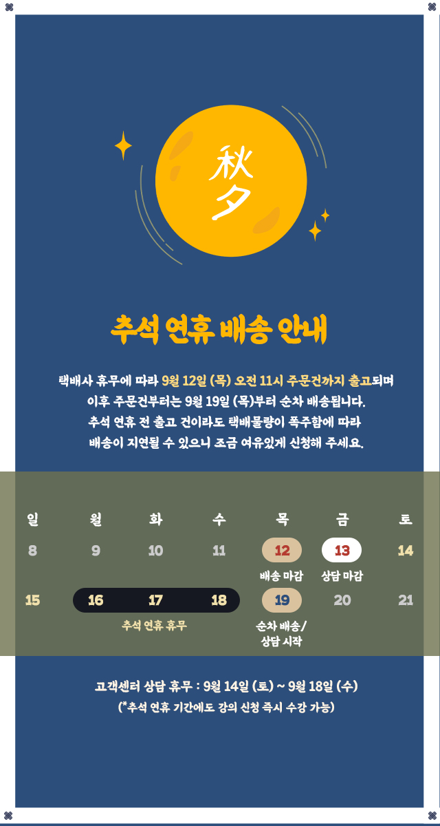 추석연휴 배송 및 고객센터 상담 운영 안내