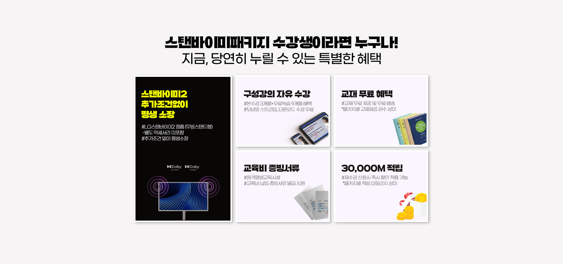 추가구성 : 수강교재(패키지별 교재 권수 상이) + 강의노트(PDF) + 모바일 수강 가능