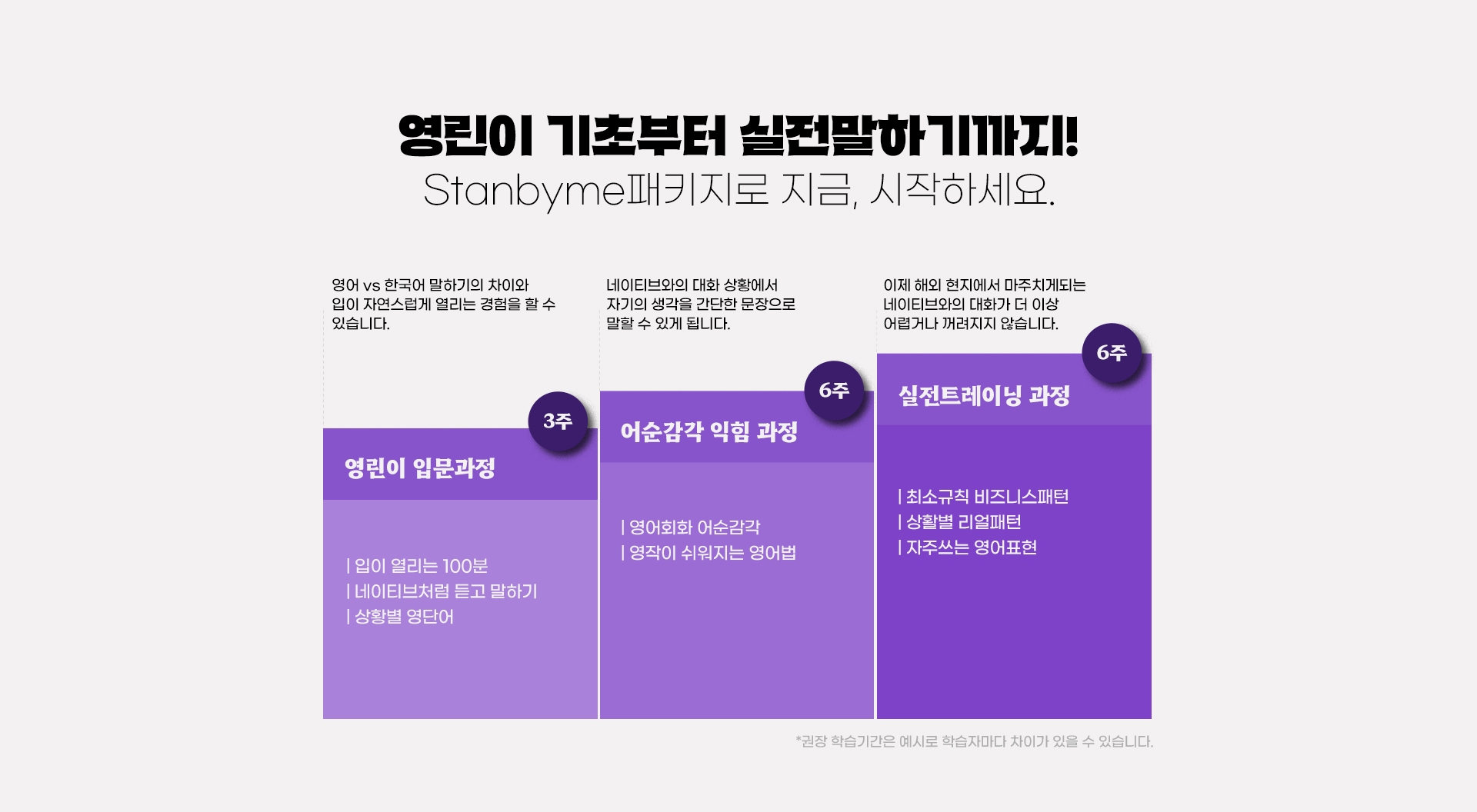 스탠바이미패키지 디바이스별 구성되어있는 강의는 상이하며 패키지별 스펙버튼 클릭 후 포함 강의를 확인 해 주세요.