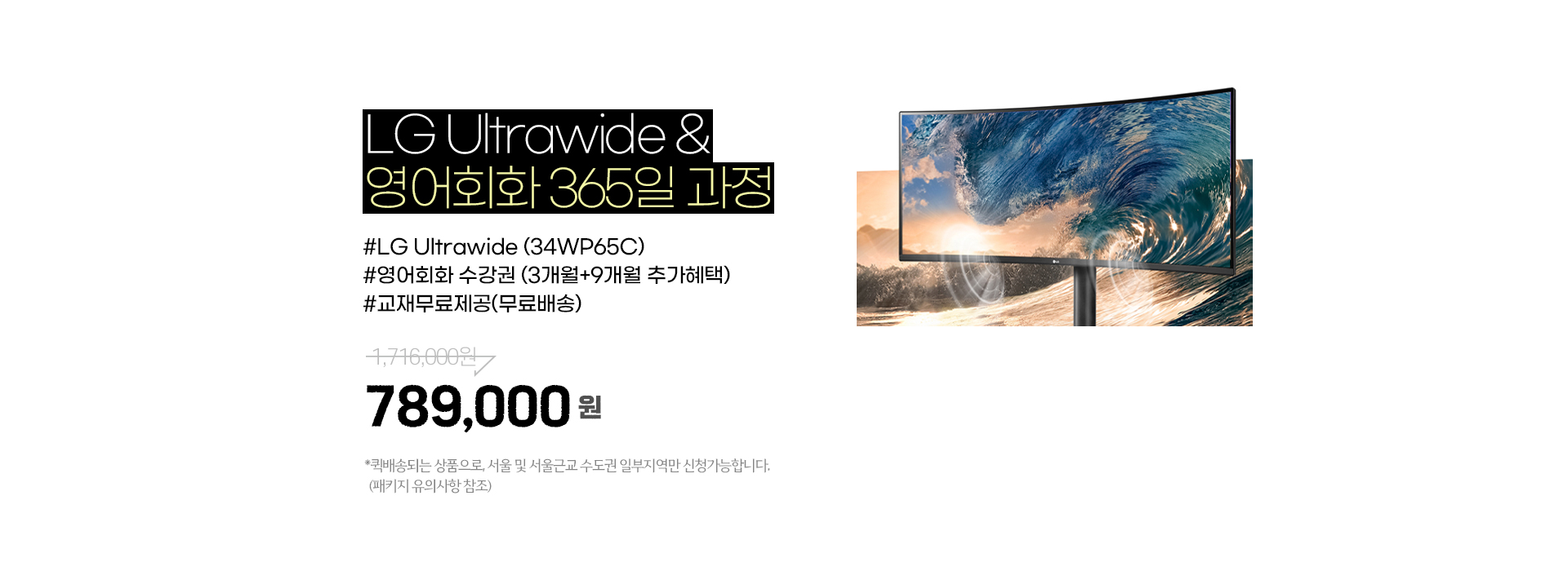 LG 울트라와이드는 퀵배송되는 상품으로, 서울 및 서울근교 수도권 일부지역만 신청가능하며, 그 외 지역 신청시 안내 후 신청이 취소될 수 있습니다.