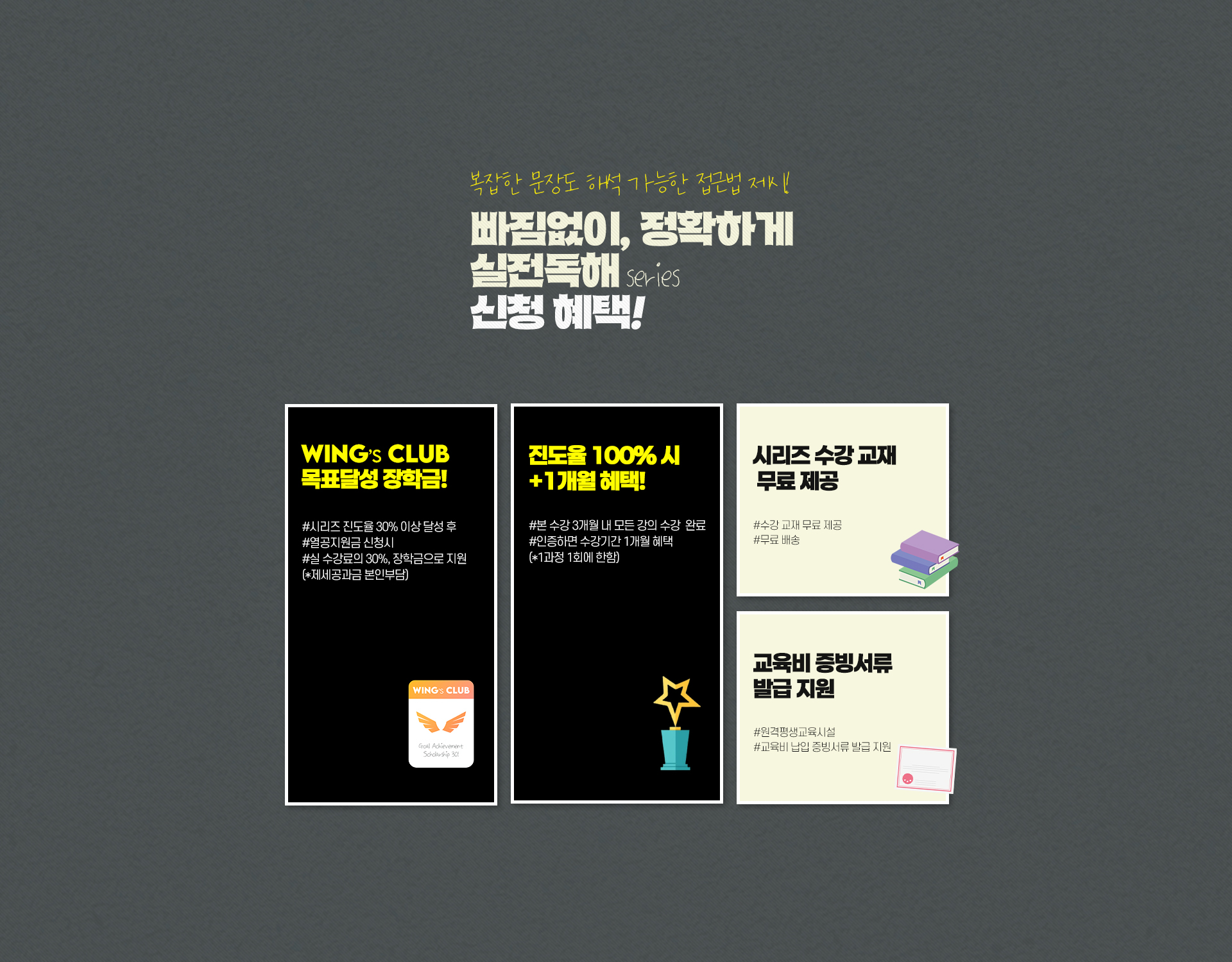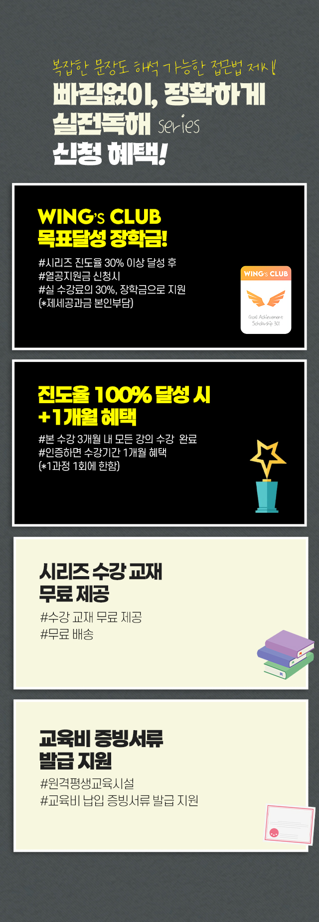 패키지 구성 : 실전독해 Series 강의 / 수강교재 (1권) / 강의노트(PDF) + 모바일 수강 가능